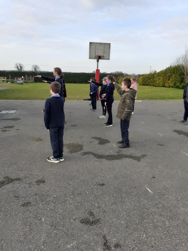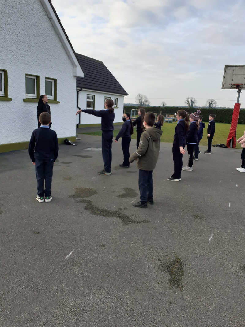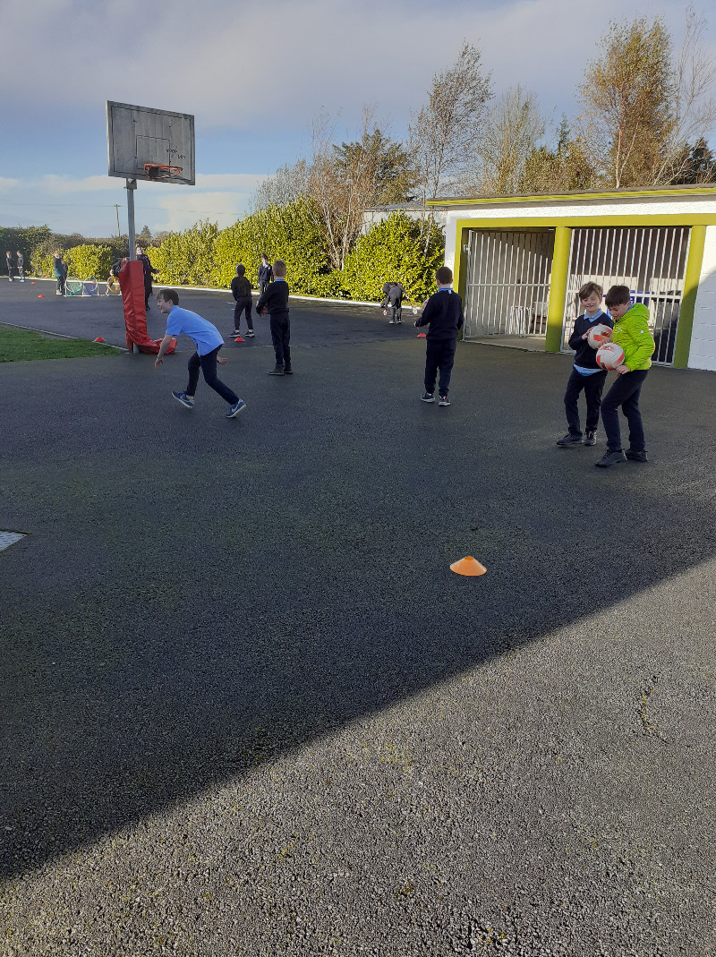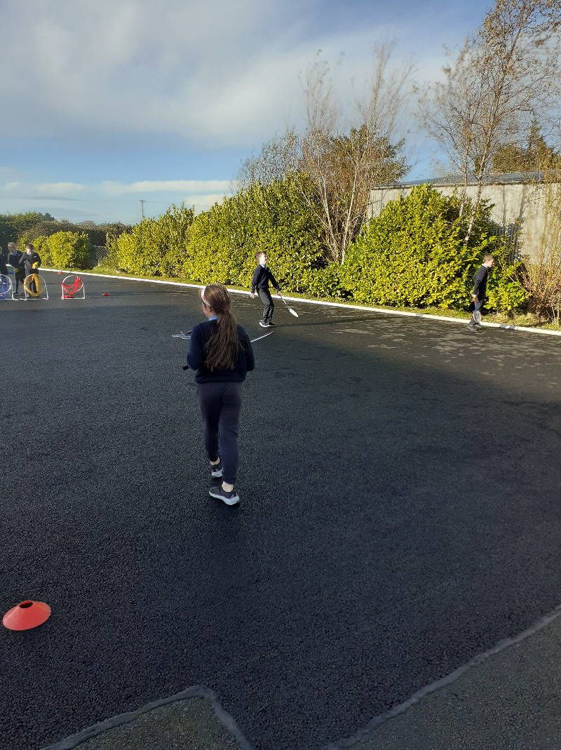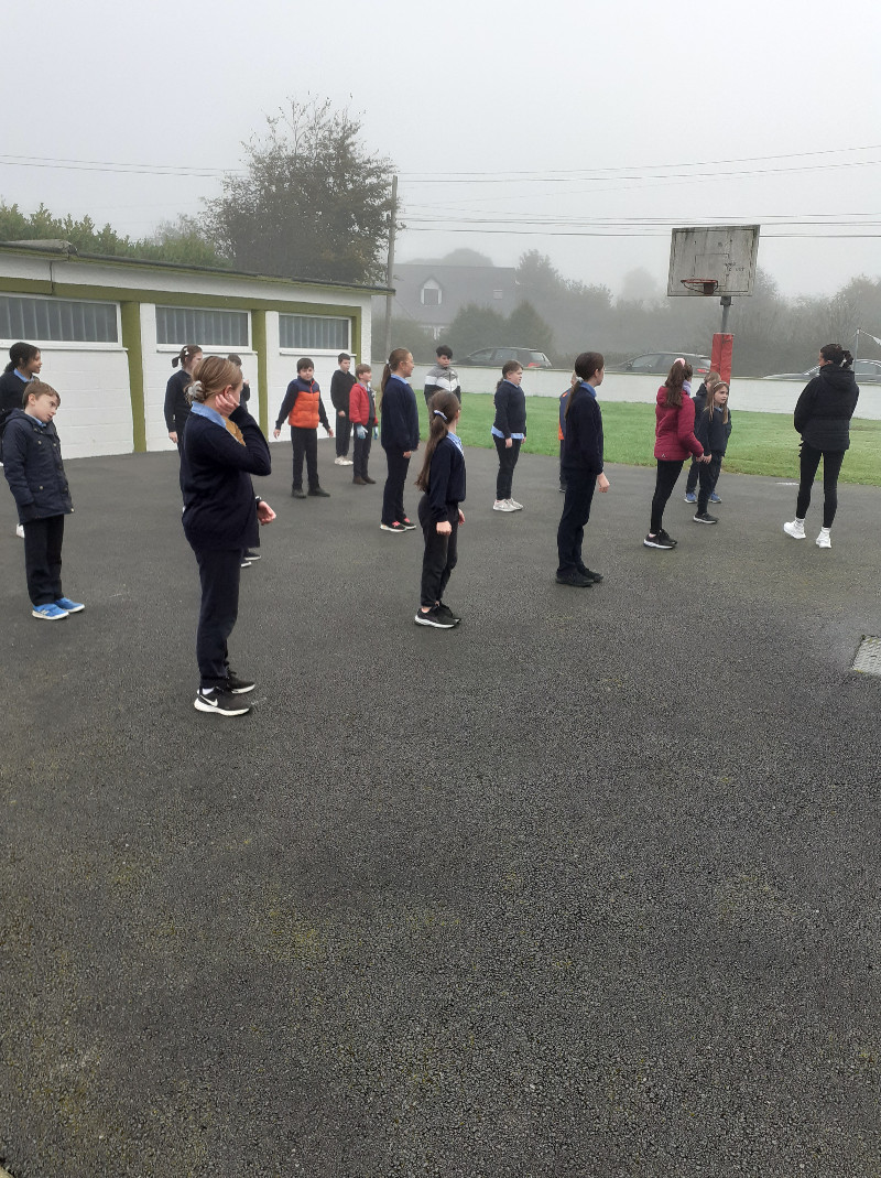 Children divide into groups daily and try different active exercises organised by the 5th and 6th class children.