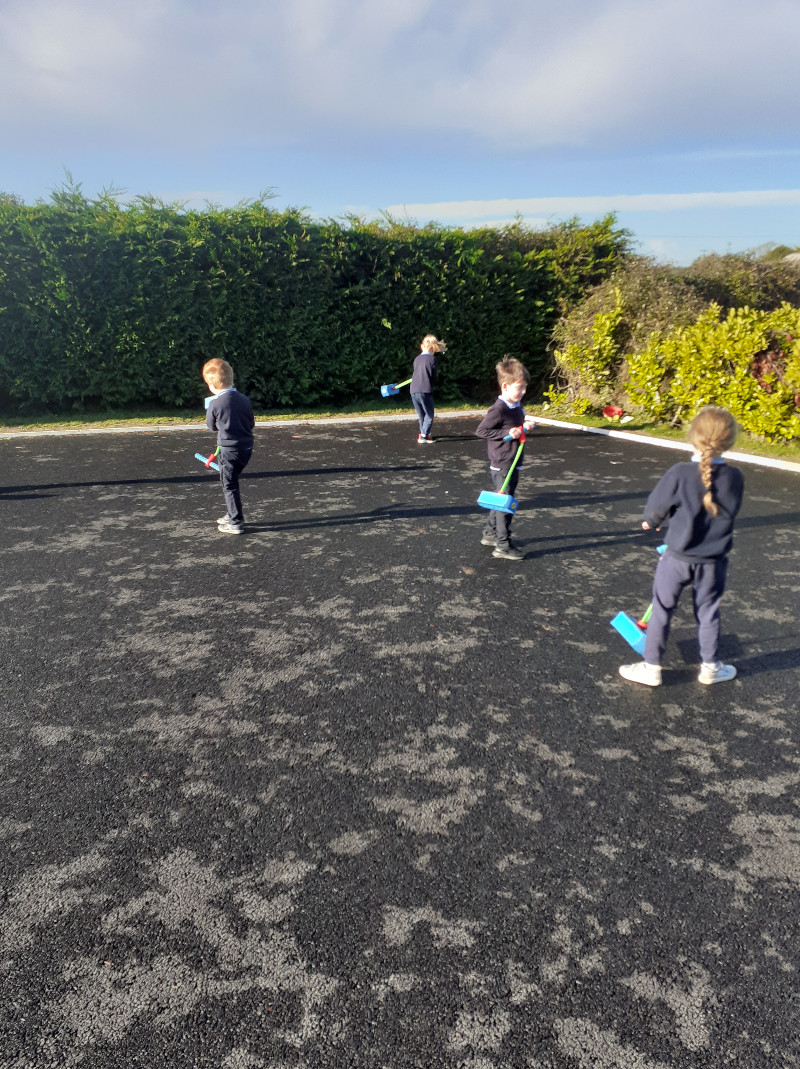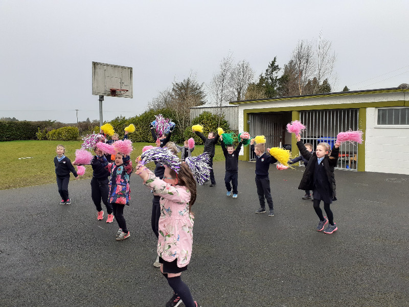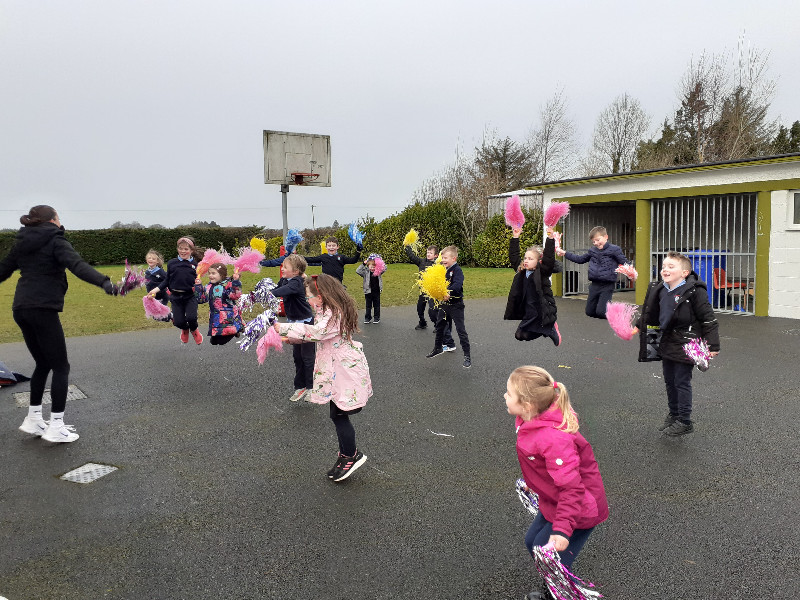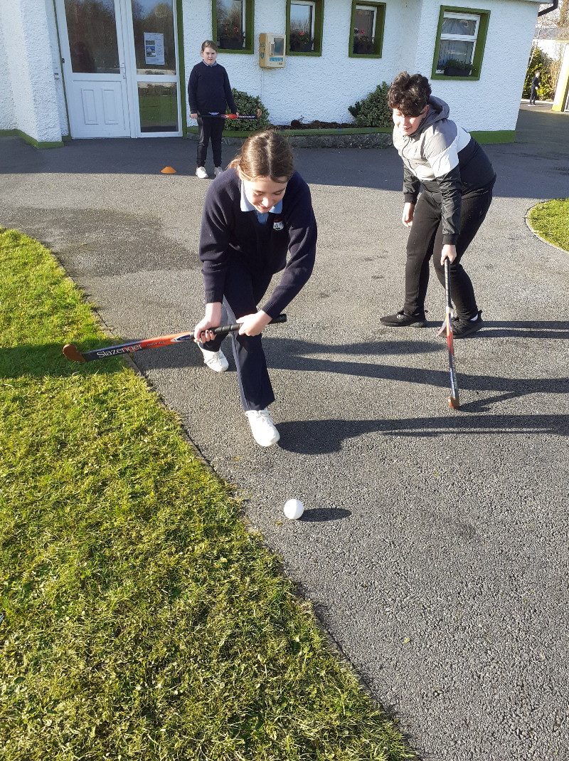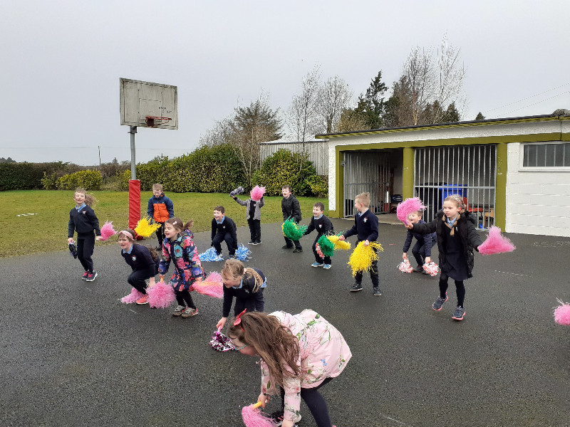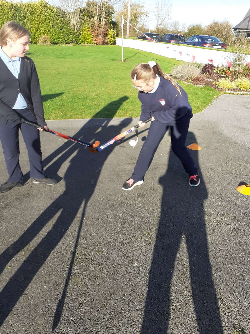 Children divide into groups daily and try different active exercises organised by the 5th and 6th class children.