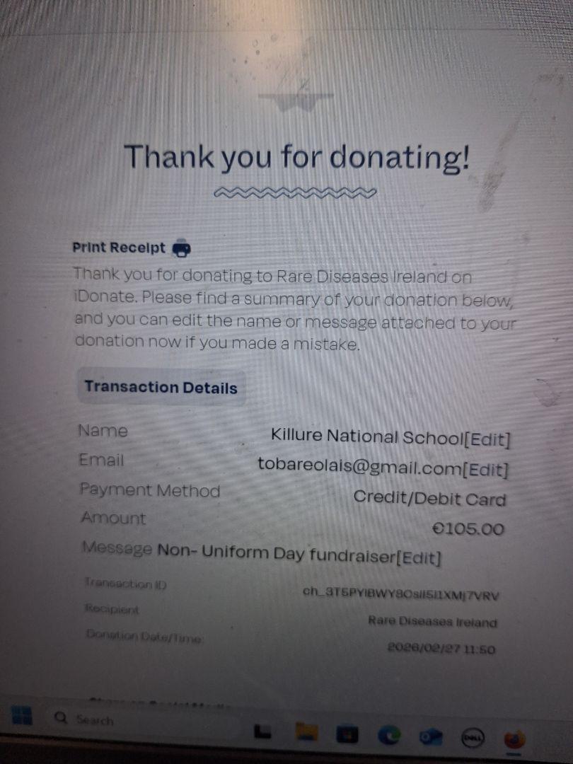Congrats and well.done to.all the children who raised 105 euros for their No Uniform Day today .