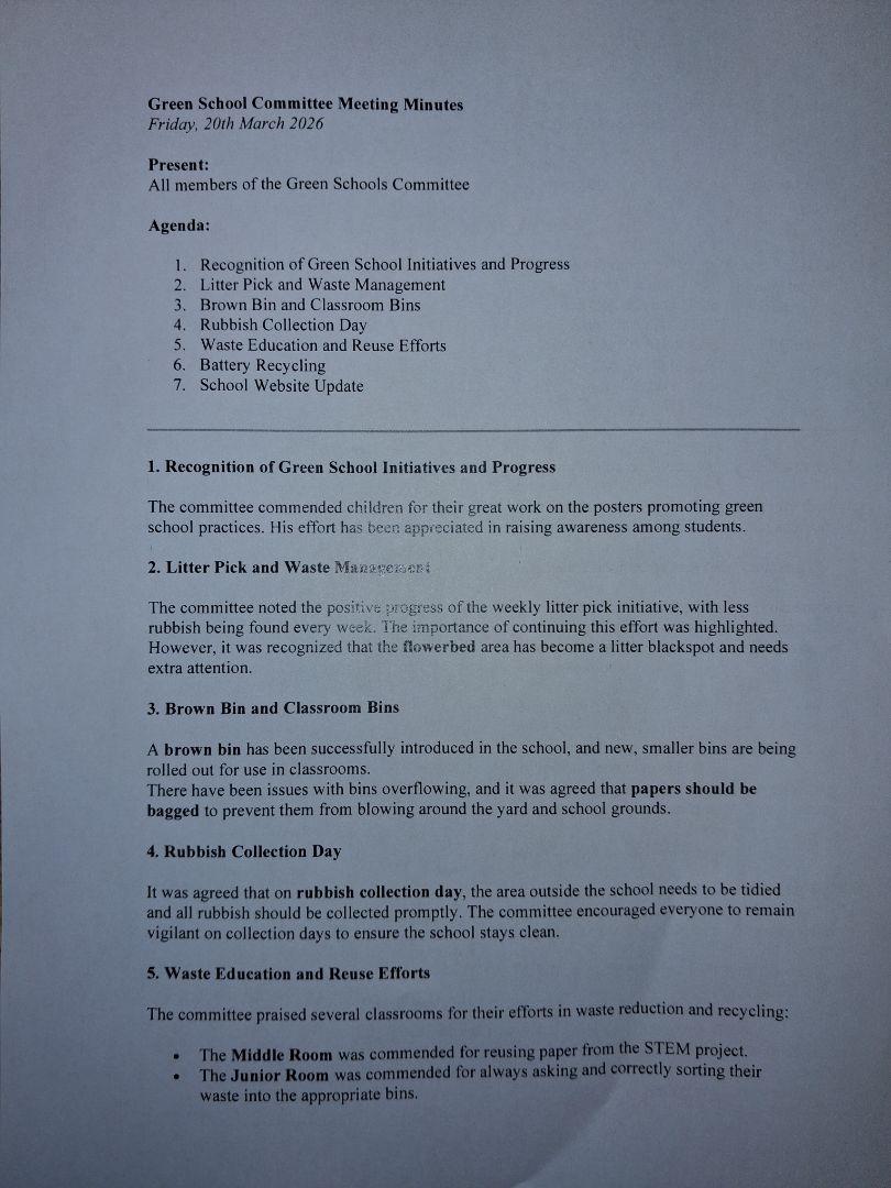 Check out the information below on pur Green Schools commitee. Commitee have an important meeting with Galway County Representative in February . They continue to do a great job in the school.