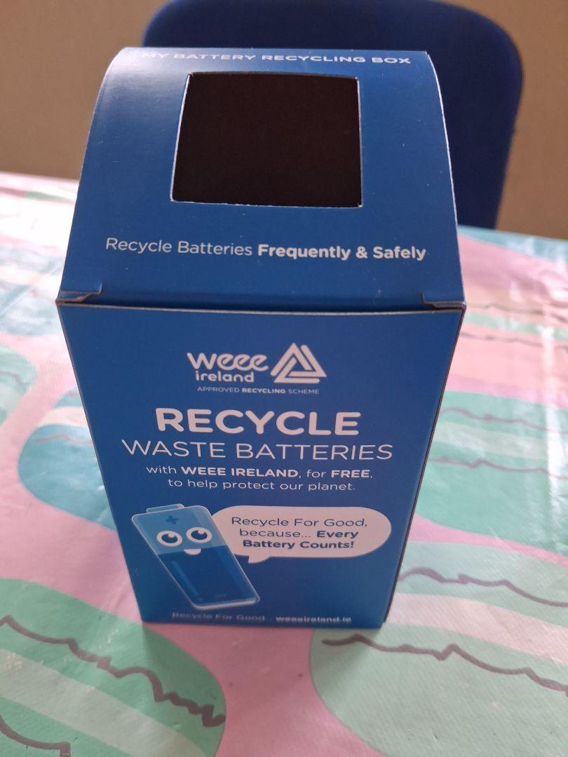 A new edition to our school as part of our Green Schools . Please recycle your batteries here .
